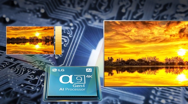 Chip α9 Gen4 AI Processor 4K trên tivi LG này có khả năng tự động điều chỉnh hình ảnh hiển thị dựng trên các nội dung đã xem, ghi nhớ những hình ảnh đã xem để lần sau xử lý hình ảnh nhanh và chính xác hơn giúp nâng cấp chi tiết hình ảnh và giảm nhòe để hình ảnh sắc nét hơn.