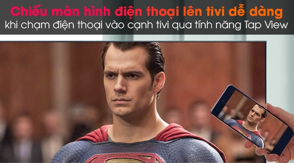 Nổi bật nhất là tính năng Tap View, thông qua thao tác chạm điện thoại vào cạnh tivi là bộ phim đang phát trên điện thoại sẽ truyền thẳng lên màn hình tivi cho bạn được xem các thước phim với màn hình rộng hơn, mãn nhãn hơn.
