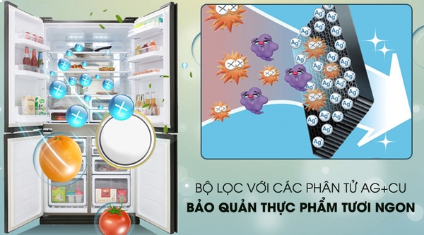 Tủ lạnh được giữ sạch sẽ nhờ công nghệ kháng khuẩn khử mùi với bộ lọc Ag+Cu
